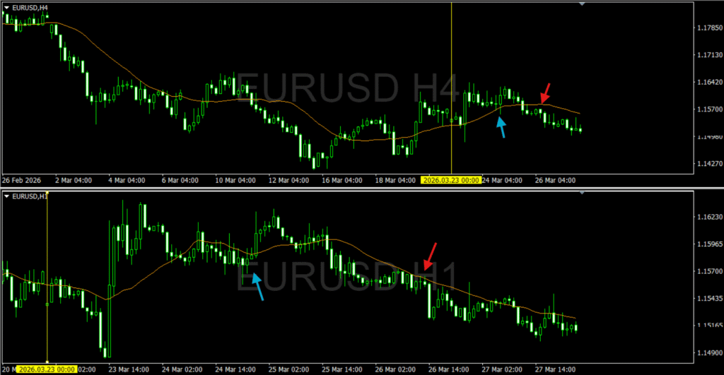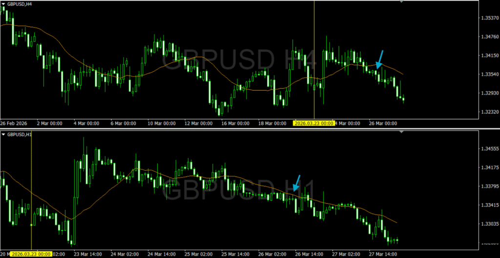 ・赤矢印箇所は足が早いパターンで関わりづらかった。1時間MAで上が抑えられて下落する形はよく見かけるから、今後は意識して視ていきたい。