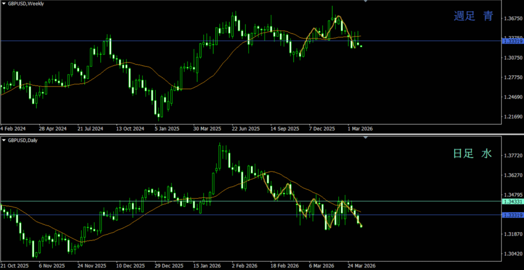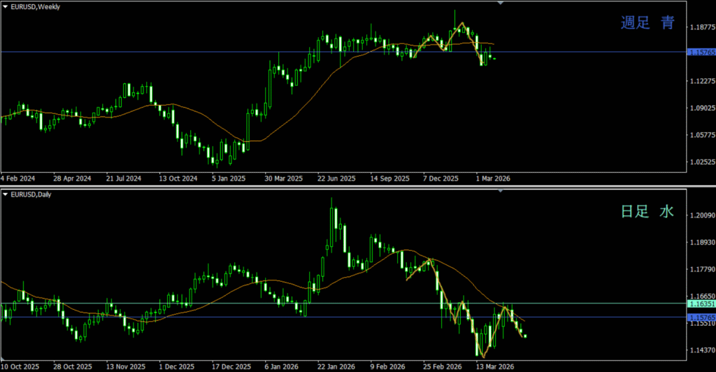 ・日足上目線の勢力が先週よりも少なくなっているから、売りの資金を入れてきそう