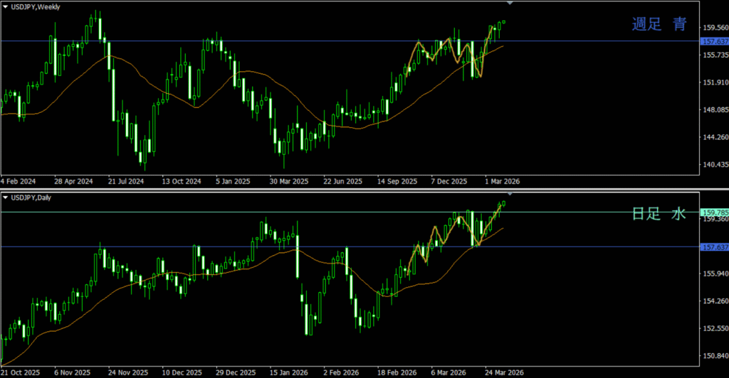 ・上昇の勢いが強いから、市場参加者は資金を入れてきそう。160円台や為替介入のような動きをそこまで警戒していないのか、比較的テクニカル通り動いてきそうな気がする