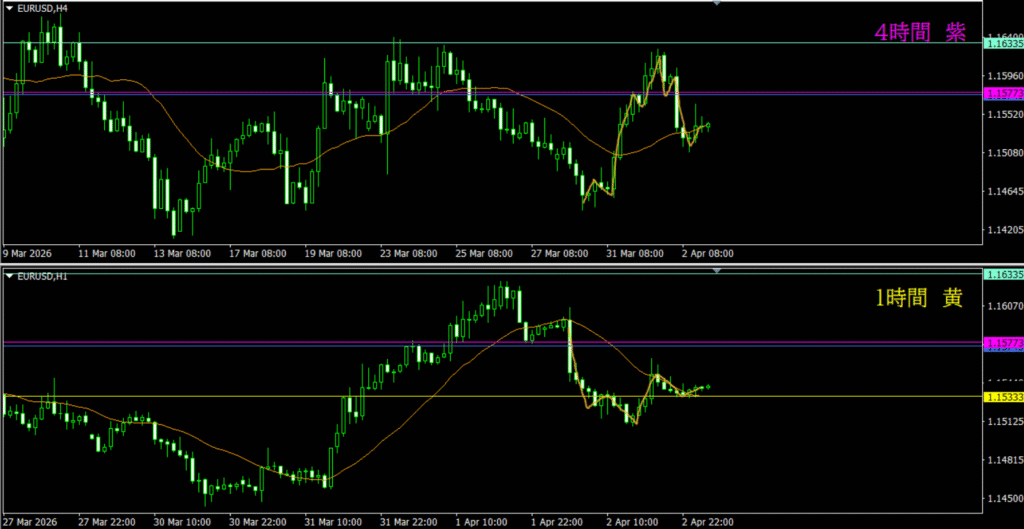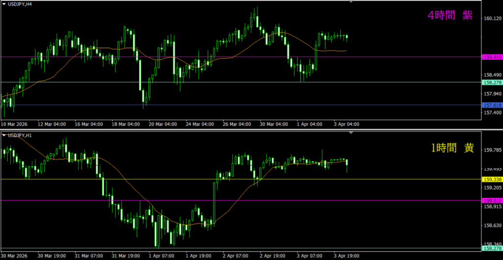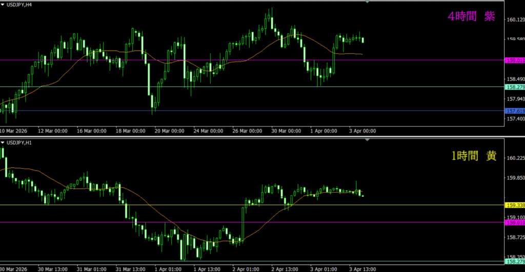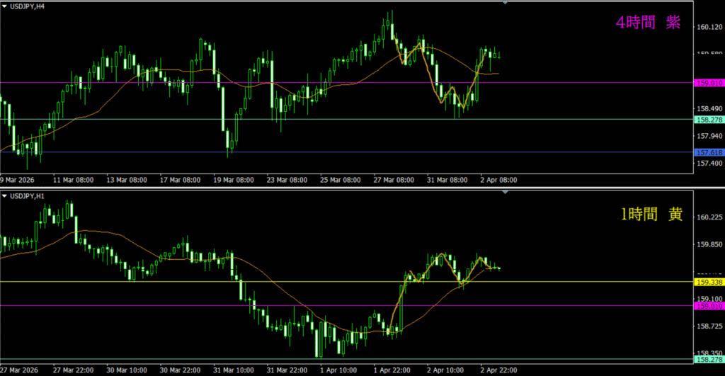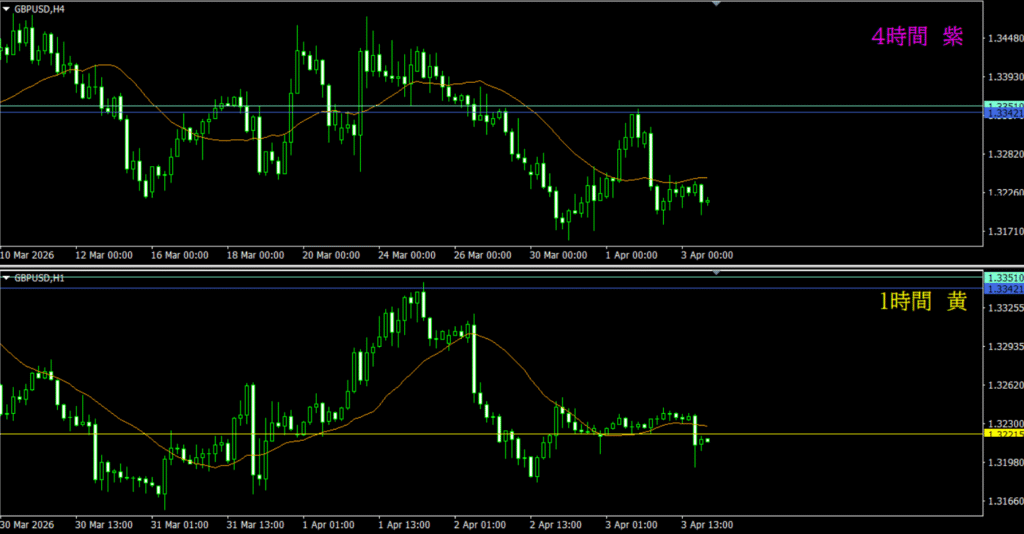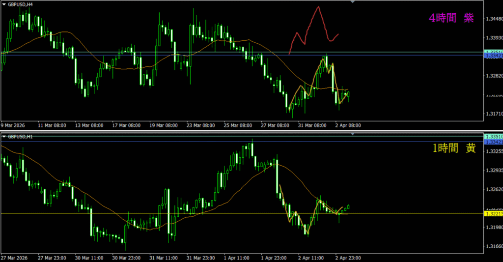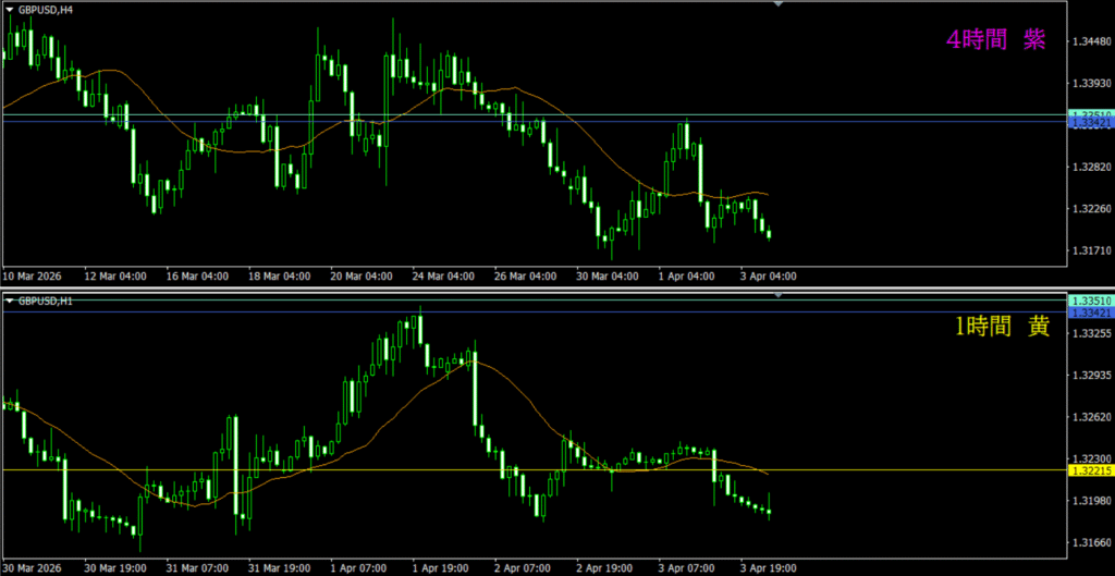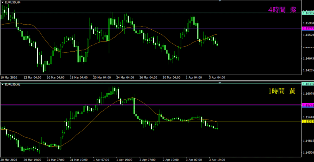 ・4時間は分かりづらいが、日足の市場参加者によって売り資金が入る可能性もありそう