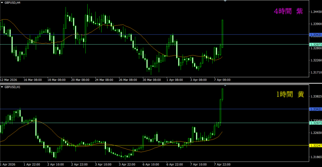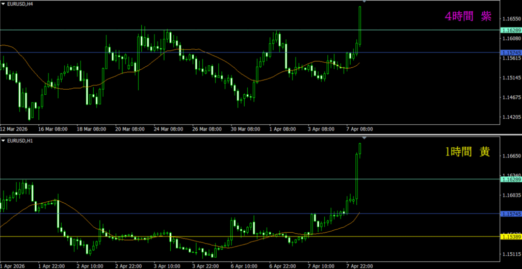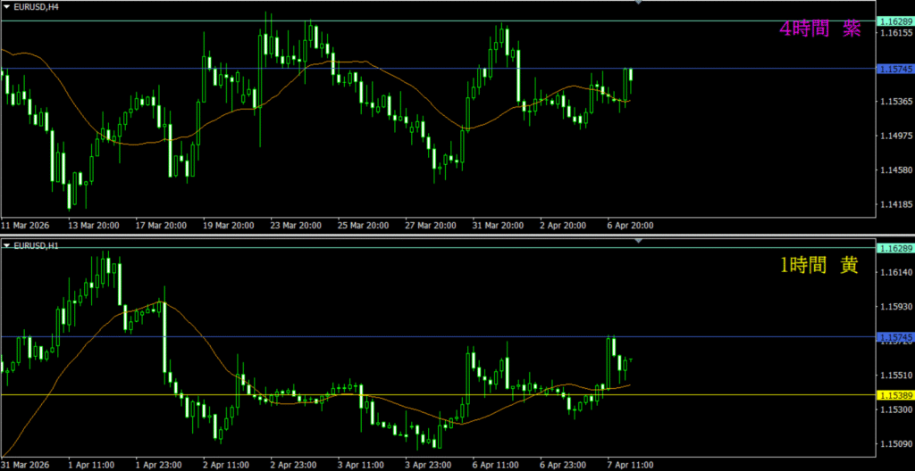 ・1時間は4時間裏確認が効いているのと、MAに支えられて上昇した場面