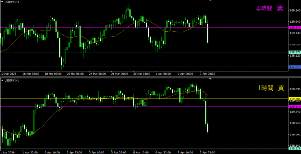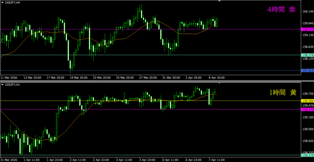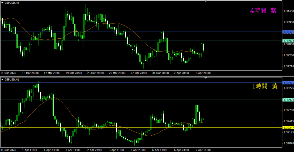 ・日足調整中の影響が4時間にも及んでいるから、市場参加者も迷いが生じていそう