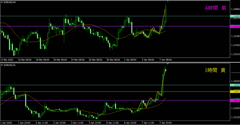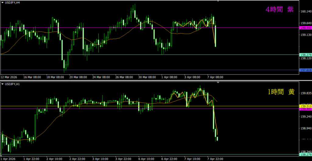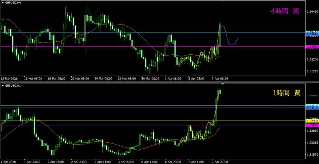・直観…様子見が無難。今日明日は売りのターンとなりそうで、狙っても1時間トレードが安全だと思う