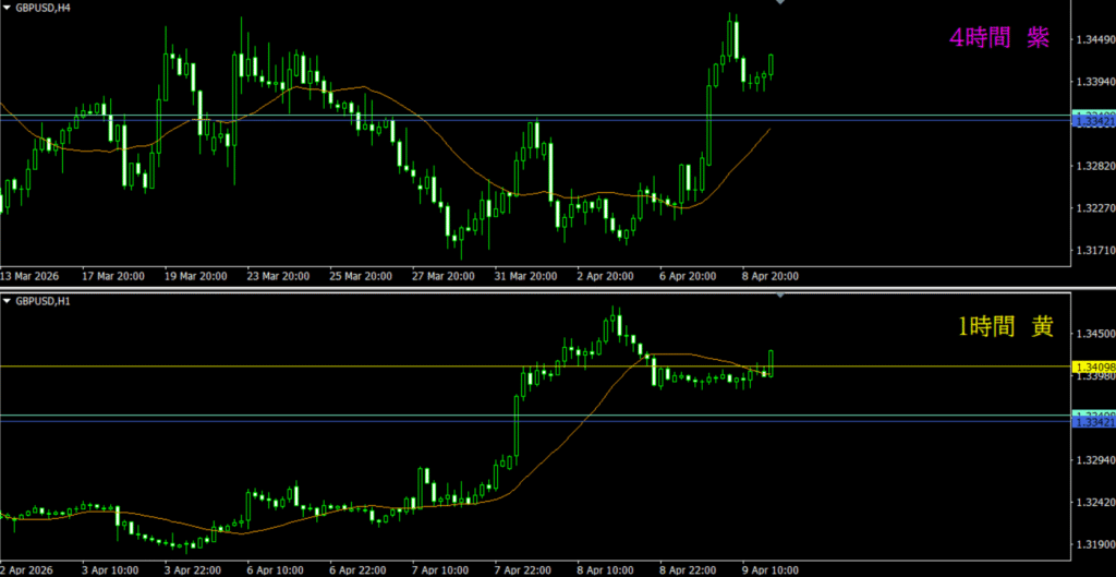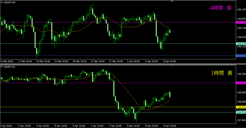 ・どこかに4時間の勢力がいるという意識が薄かったから、それを高めていきたい。また、それがロングを狙う時のリスクとなるから、無警戒に伸ばせる場面ではない、という意識が必要。