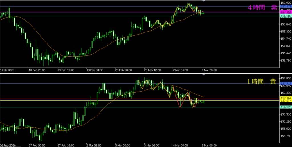 ・4時間MA傾きが上なだけあって、やはり引き戻された。4時間1波の狙い方が分かったのは良かった。ただ、まずは王道のセオリーだけで十分だと思った。