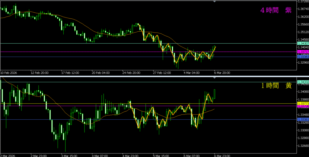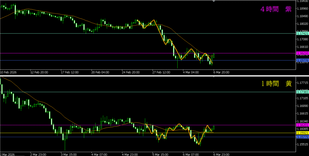 ・4時間1波狙いの1時間もすでに波が出たように見えるから、ここからは何も出来ない