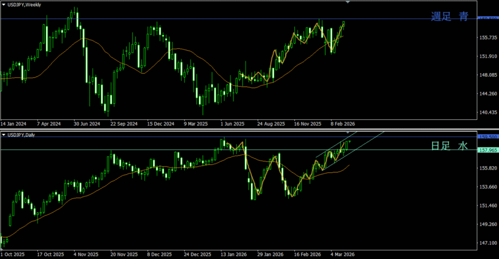・日足チャネルが効いていることから週足高値と交わるところが意識されそうで、止められるとしたらここになる