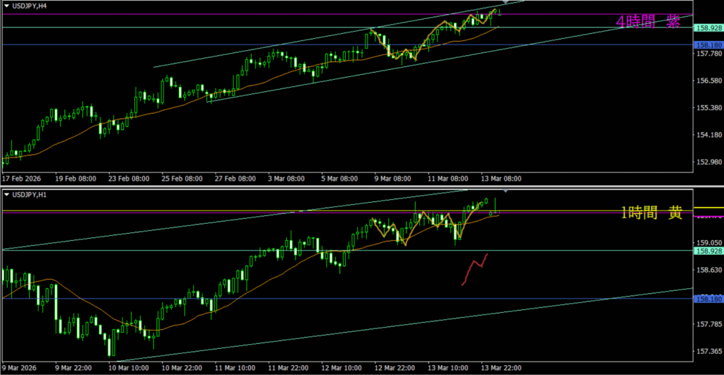 ・4時間1時間同時高値越えだとしたら待つのは攻防ライン
