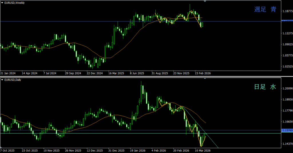 ・押しをつけてこないと何も出来ないが日足勢力の存在は無視出来ず、それが嫌な感じ
