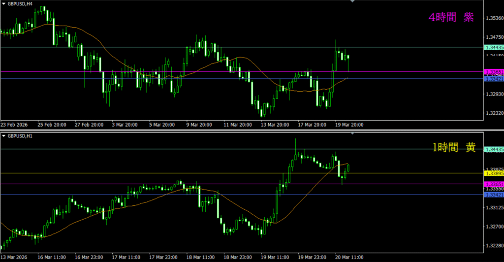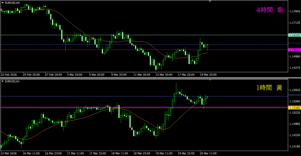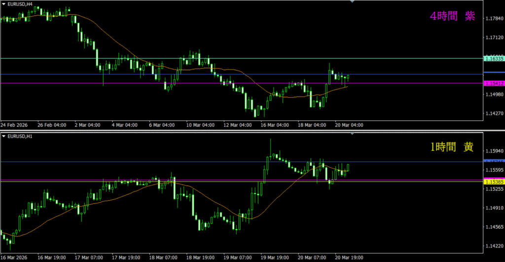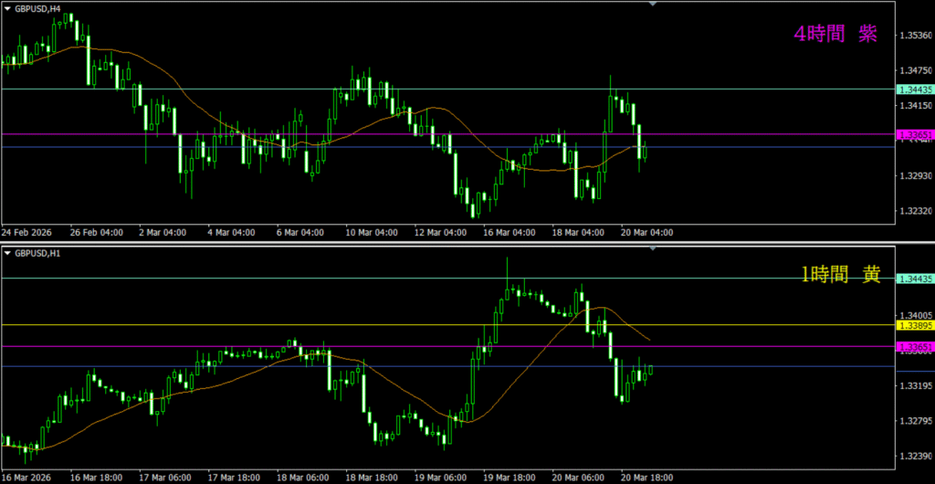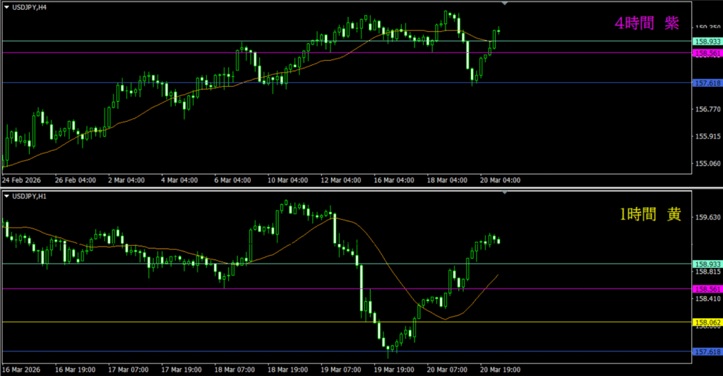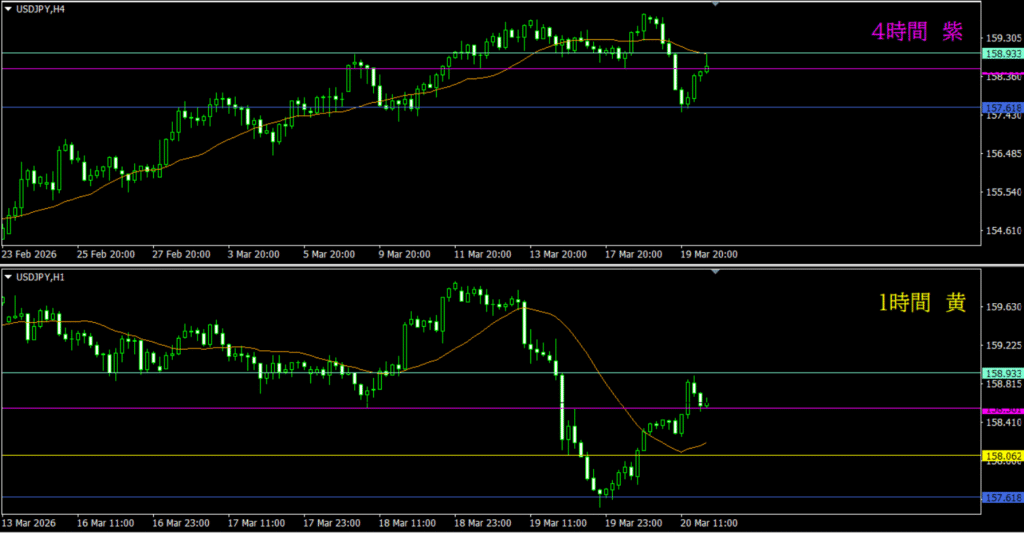 ・4時間水平線が明らかに効いている反応を示している