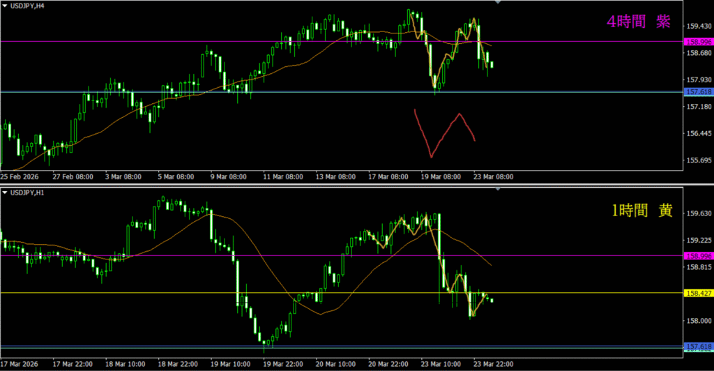 ・日足の動きも分かりづらいから、尚更時間経過を待ちたい